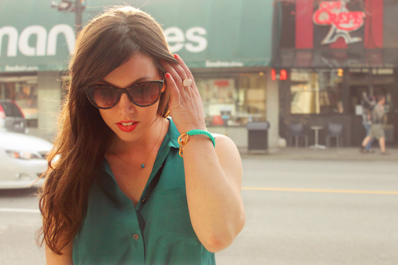 But whatever, that’s what being a blogger is all about I guess. Looking like doo-doo and not apologizing for it…right?? Yeah, no I don’t think so either. But I still wanted to post this outfit because I love everything else about this look, especially my new bfrend bracelet! You may have already heard of these friendship-bracelet-inspired baubles, but if you haven’t, be sure to check out the lovely Monika’s creations. I picked mine up from Violet Hill Clothing in quaint Steveston Village yesterday and am already in love!