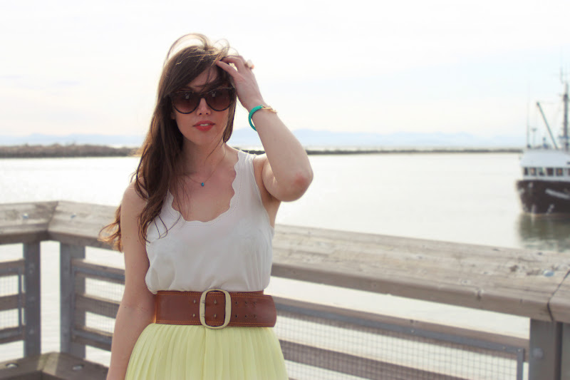 This skirt you're wearing is AWESOME! Is it from the current collection or an older piece? It's just the perfect length and shade of yellow. Looks great with the white tank top.