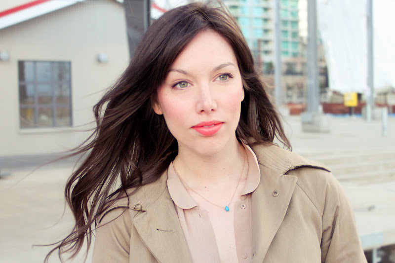 I may be a big colour person, but sometimes it’s just really refreshing and palette-cleansing so to speak to do a full nude look (nude colours that is…though walking around naked would be palette-cleansing too I suppose). The only pops of colour in this look are the turquoise in the little gold necklace Matt got me from a vendor years ago and the beautiful and chic Saint Patrick’s Day tattoo that is refusing to come off my hand.