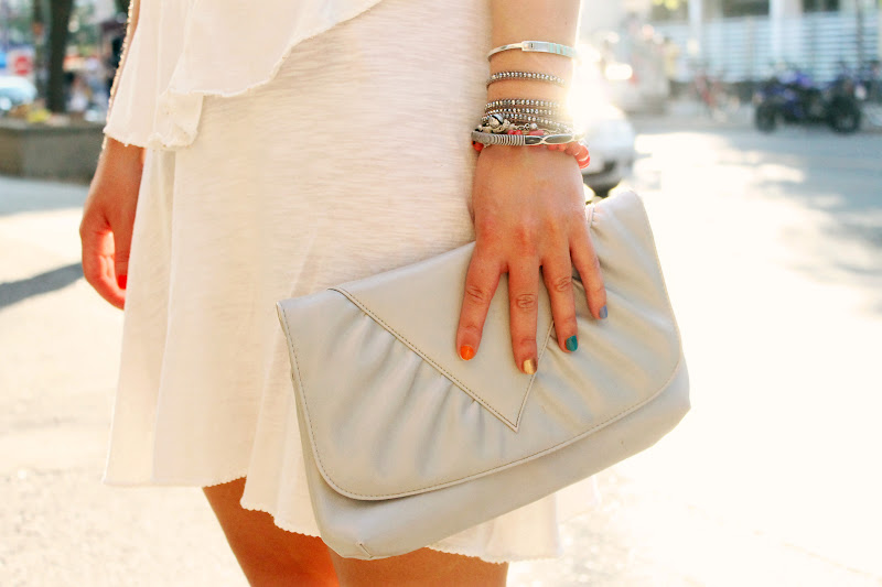 Anyway, I was bored out of all the red picks I usually go for in my closet (and it was hard to think), so as an ode to the Great White North, I opted for a no-fail white sundress topped with red details like my coral bracelet from Maui and bold lip à la NARS velvet matte lip pencil in Red Square. And as a nod to the days-long party known as Pride Toronto, I painted on a pride-appropriate mani the other night too.