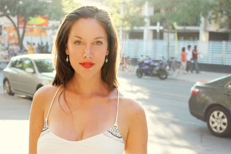 I am so, so envious of your beautiful long weekend weather, pally! All the photos we've shot this weekend have been indoors 😛 Seriously, though, you do look stunning in spite of the vodka – that white sundress is a lovely, simply piece fo hot summer days but its those Betsey heels that really caught my eye. Gorgeous! Oh, and of course the red lip. You can really never go wrong with Nars. Miss you!!