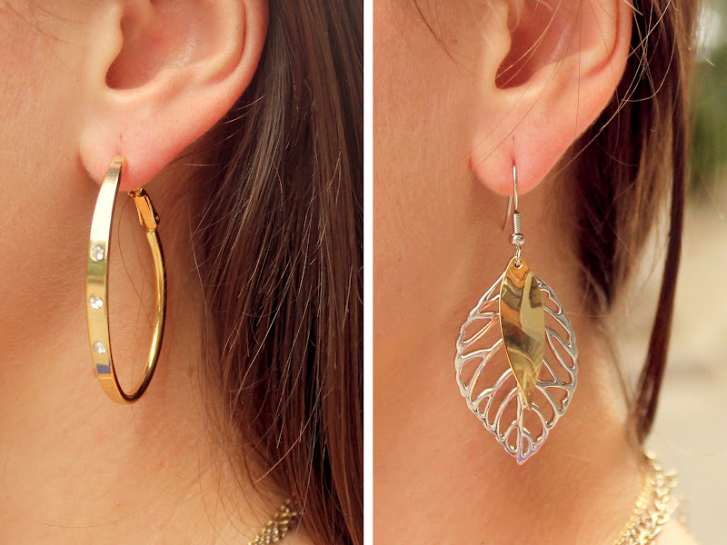 necklace ($22 US), Bren flower ringlet duo necklace ($36 US), Christine crystal hoop earrings ($28 US)