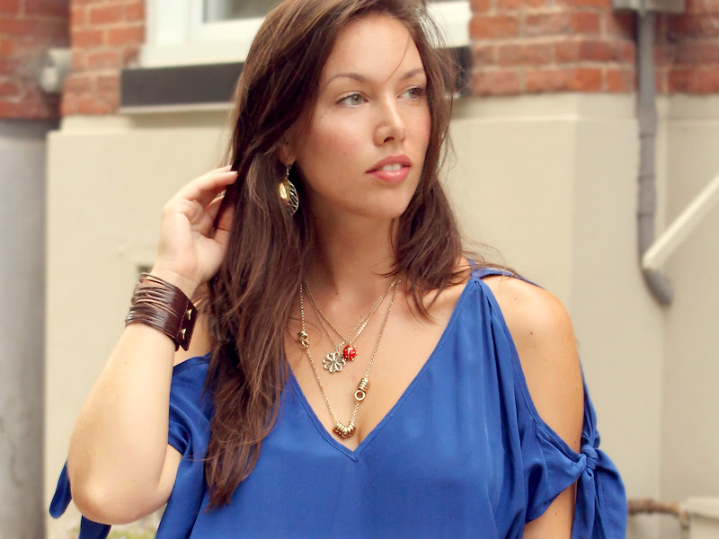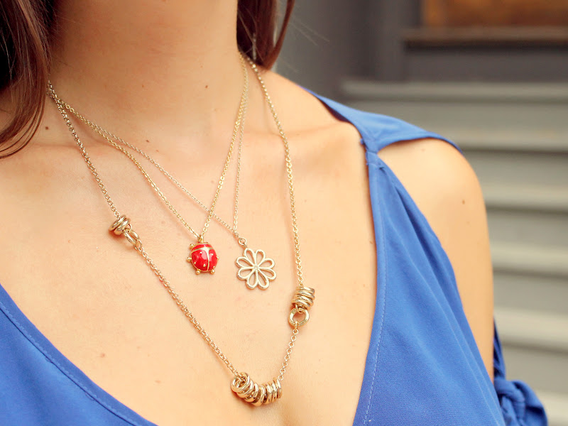 Ah that shade of blue always looks great on you! I like how you layered different necklaces – the ladybug is my favorite 🙂