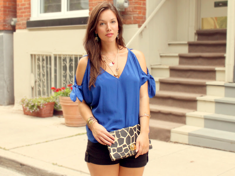 Wearing: Akiko silk top (from my friend Cee!), Talula shorts, H&M wedges & clutch