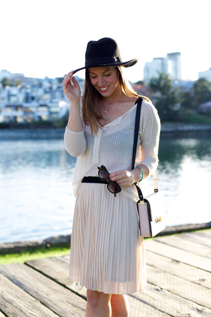 Even in a more girly look, I’m all about slouchy layers and embracing the sheerness of the sweater, giving a more lived-in feel to the whole look. It was the perfect thing to wear to Granville Island last night for a last minute but beautifully warm and sunny grocery run.