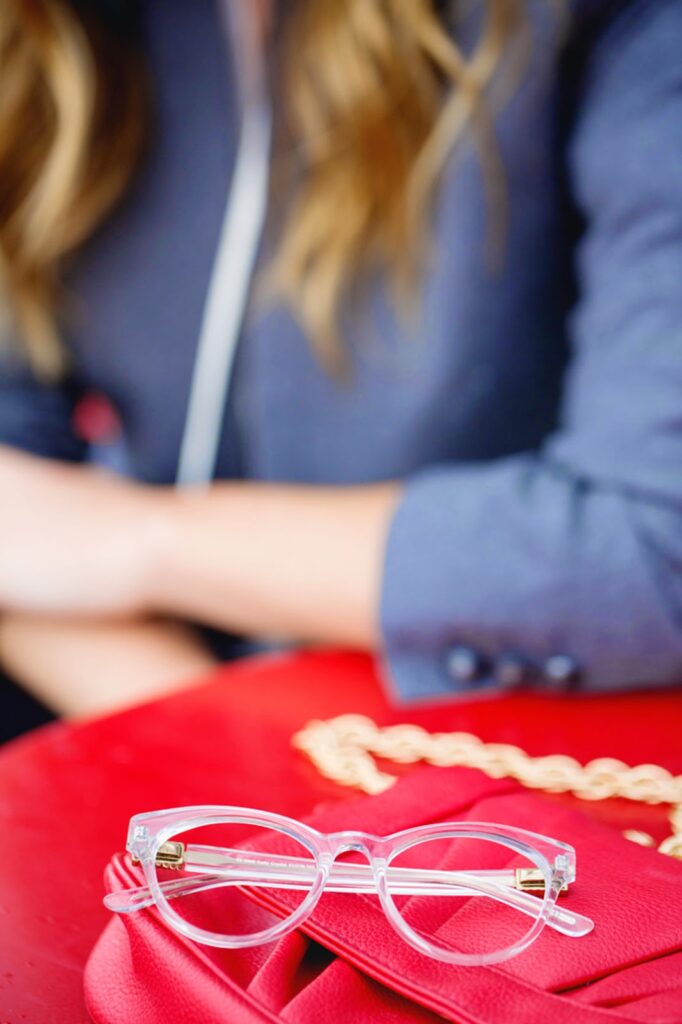 So many of my meetings are over the phone with marketing managers or reps outside of the city, so if I’m meeting with anyone in the city, I love to ensure that it’s a face-to-face to get me out of the apartment (and hopefully into Beaucoup, my go-to meeting location suggestion as it’s not only a beautiful, cozy space but it has the best baking in the city in my opinion!). Sleek but business-apropos classics like a blazer, blouse and skinnies are given an extra dose of style with these incredible clear frames – I love the idea of mixing up classic frame shapes with unexpected but still neutral shades!