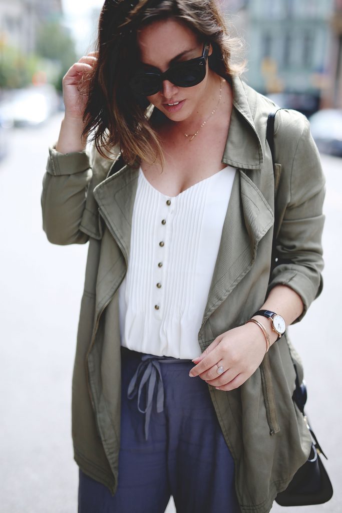 If you don’t own a pair of silk pants, do yourself a favour and make it a top priority now. They’re not only beyond comfortable, but they are some of the best pieces for transitioning into different seasons—these Aritzia beauties (which were featured heavily last summer during a Paris-Ireland-Northern Ireland-London tour, see the full post here) work perfectly with a utility jacket (love this one from Gentle Fawn) when it’s still cool enough at certain points of the day to need something to cover up with, but as the temps rise just lose the jacket and wear with a delicate camisole.