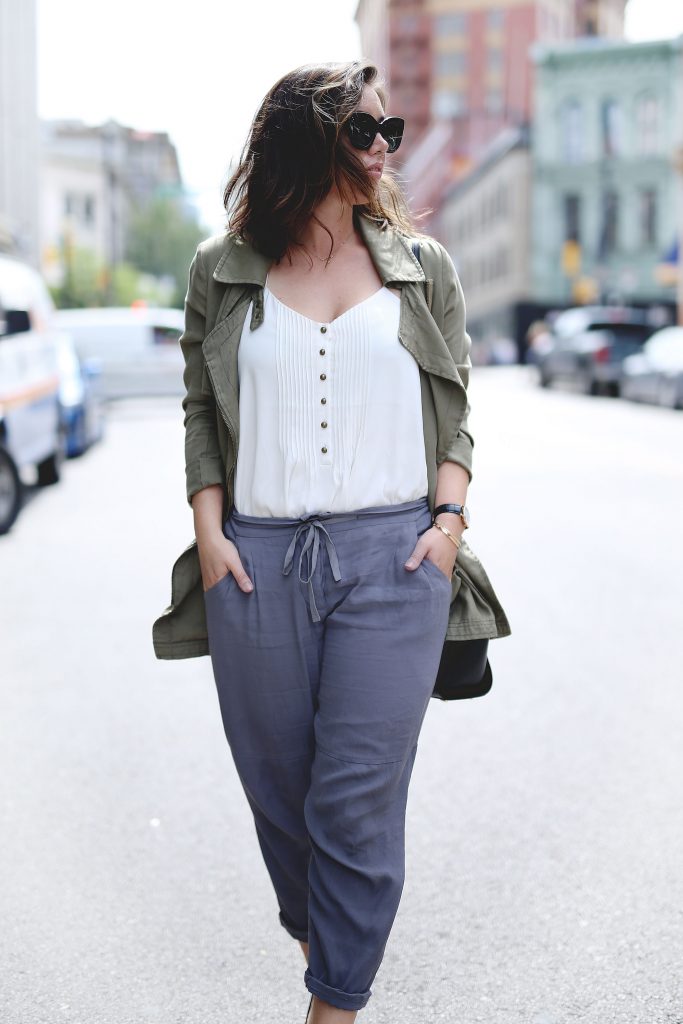 This outfit would work just as well with Cons to really up the comfort factor but if you work in an office setting or have meetings to do, add in a pair of pumps or swap the utility jacket for a silk blazer (can you tell I love silk?). Insider tip: if you have a hard time finding affordable silk, Joe Fresh actually has an amazing selection of blouses, tank tops and pants all yearlong but especially right now during the summer! In fact, I have a roundup of some of my favourite silk pants in a range of budgets to shop at the bottom of this post, with some picks from Joe Fresh.