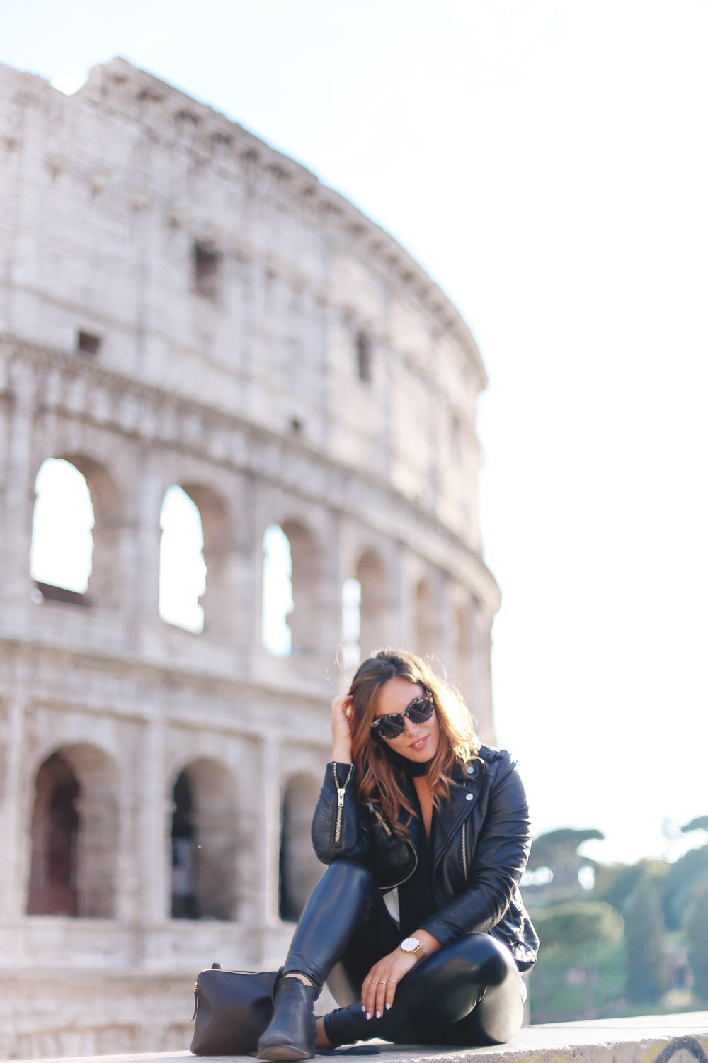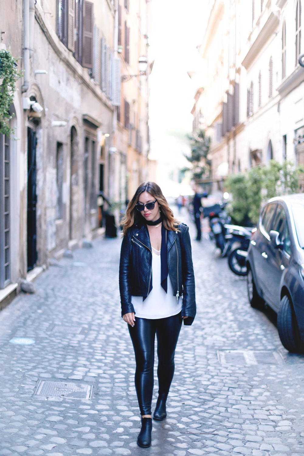 Rome in October is a bit all over the place temperature wise so I dressed in layers (leather leggings, leather jacket, camisole and ankle boots) to cope with the changing climate during the day, and we took key breaks for food and nourishment, warming up later in the day at Trastevere for aperitivo hour (something you should literally do every day, it’s the best).