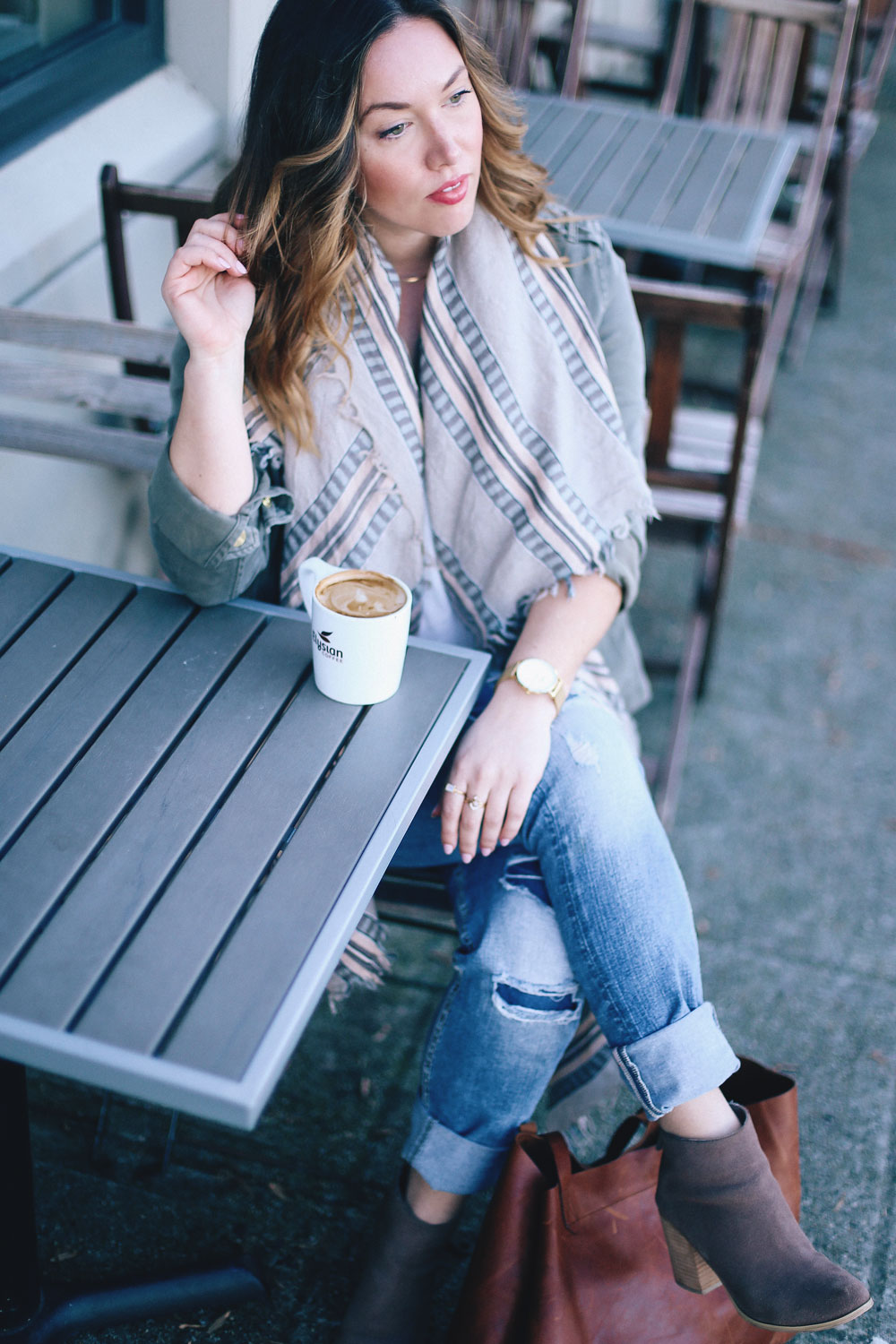 One of my favourite spring transition tricks is phasing in the canvas jacket as opposed to the more heavy wool pieces I start getting beyond sick of around this time of the year. Keep the blanket scarf on for now and a cozy pair of boyfriend jeans, along with some ankle boots—all cozy, warm but decidedly cross-season friendly! When it starts warming up you can start throwing the canvas jacket on top of more summery looks (this one for example!) but in the meantime, just keep the base of your look warm and top with the canvas jacket!