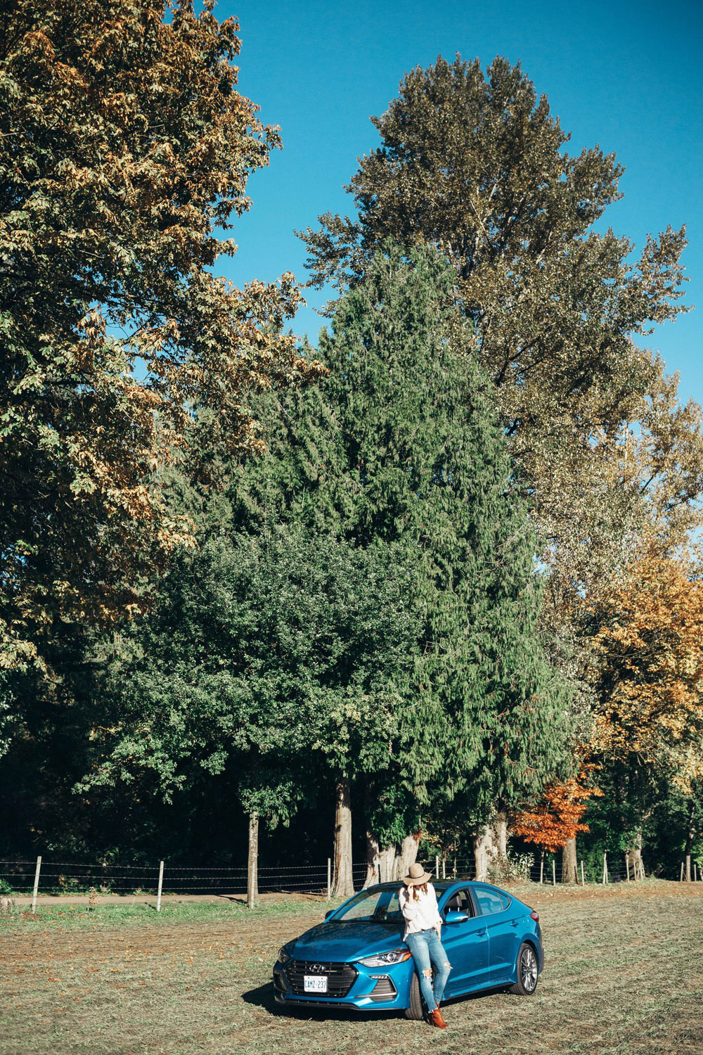 As you guys might remember, I’ve been testing out some of Hyundai Canada’s latest and most exciting models this past year and I was so excited to try out their 2017 Elantra Sport to make the trip out to the pumpkin patch, about an hour away from downtown Vancouver! In stunning Marina Blue, I actually did a day trip with my little brother and picked him up in Lynn Valley to make the trip out on a beautiful day. It was right off the bat such a smooth drive (in standard no less, actually my preferred way to drive!). The shifting was so smooth and the car had all the luxe details that Hyundai is known for (heated steering wheel, unbelievably cozy seats, etc).